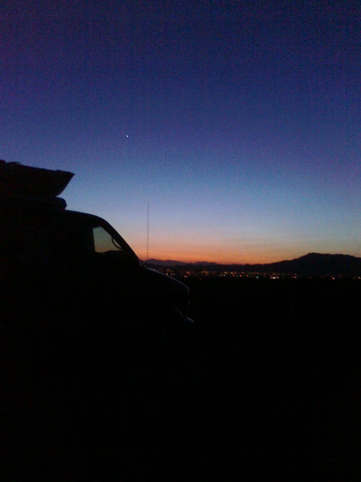 I camped a few miles up into the foothills last night to get a different view of the city and some profound stillness. Woke up once when wayne showed up to check on me. The second time was when mutt began to growl that deep warning that still surprises me to hear.